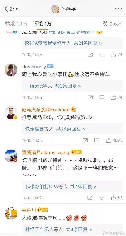 春风日产官微则用上了《碰见》的歌词:“您碰见谁,会有怎么的对皂,您等的车,用70年杂电科技向您剖明, 尔排着队 ,等着您翻尔的号码牌,pljj 蔚来的官微一样还用孙燕姿《超快感》的歌词:“给您杂电超快感,把速率皆更加。” 而威马汽车则是开创人沈晖亲自上阵:“引荐