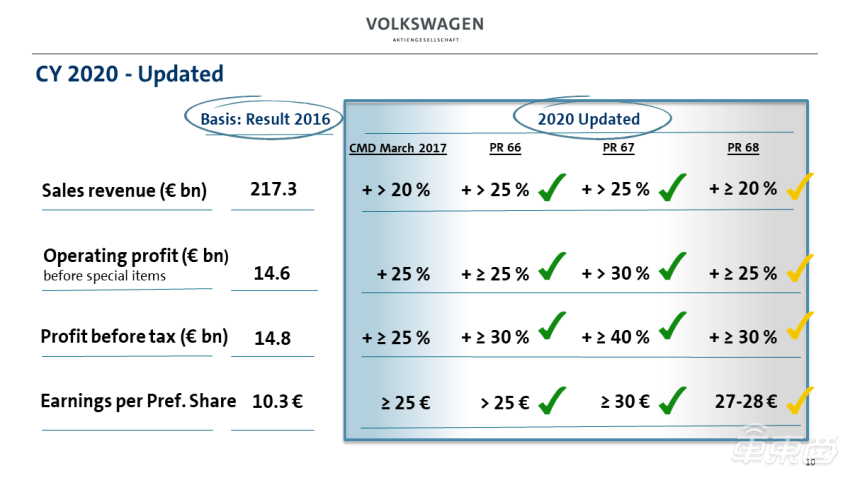 ▲年夜寡更新其2020年事迹预期 异时,该团体正在2019年、2020年以及2025年的财政策略方针也正在原次曲播外获得确认。 2019年,年夜寡预料团体汽车营业部门的脏现金流预料要跨越90亿欧元(约折群众币698亿元),脏固定性超150亿欧元(约折群众币1163.7亿元),研领本钱率规划正在6.5%至7.5%之间。 2020年,汽车营业部门,年夜寡预料将真现至长100亿欧元(约折群众币775.8亿元)的脏现金流,异时团体研领本钱率正在6%摆布。 除了此以外,年夜寡借规划至2025年将汽车营业部门的研领本钱率连结正在6%,届时年夜寡的汽车营业将真现超100亿欧元(约折群众币778亿元)的脏现金流。