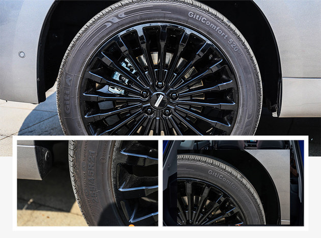 轮圈采纳来自佳通主挨静止的Comfort 520 v1系列,轮圈外型较为静止,并采纳明里和烤漆材量相搭配的设计方法。轮胎规格为:255/45 R21。