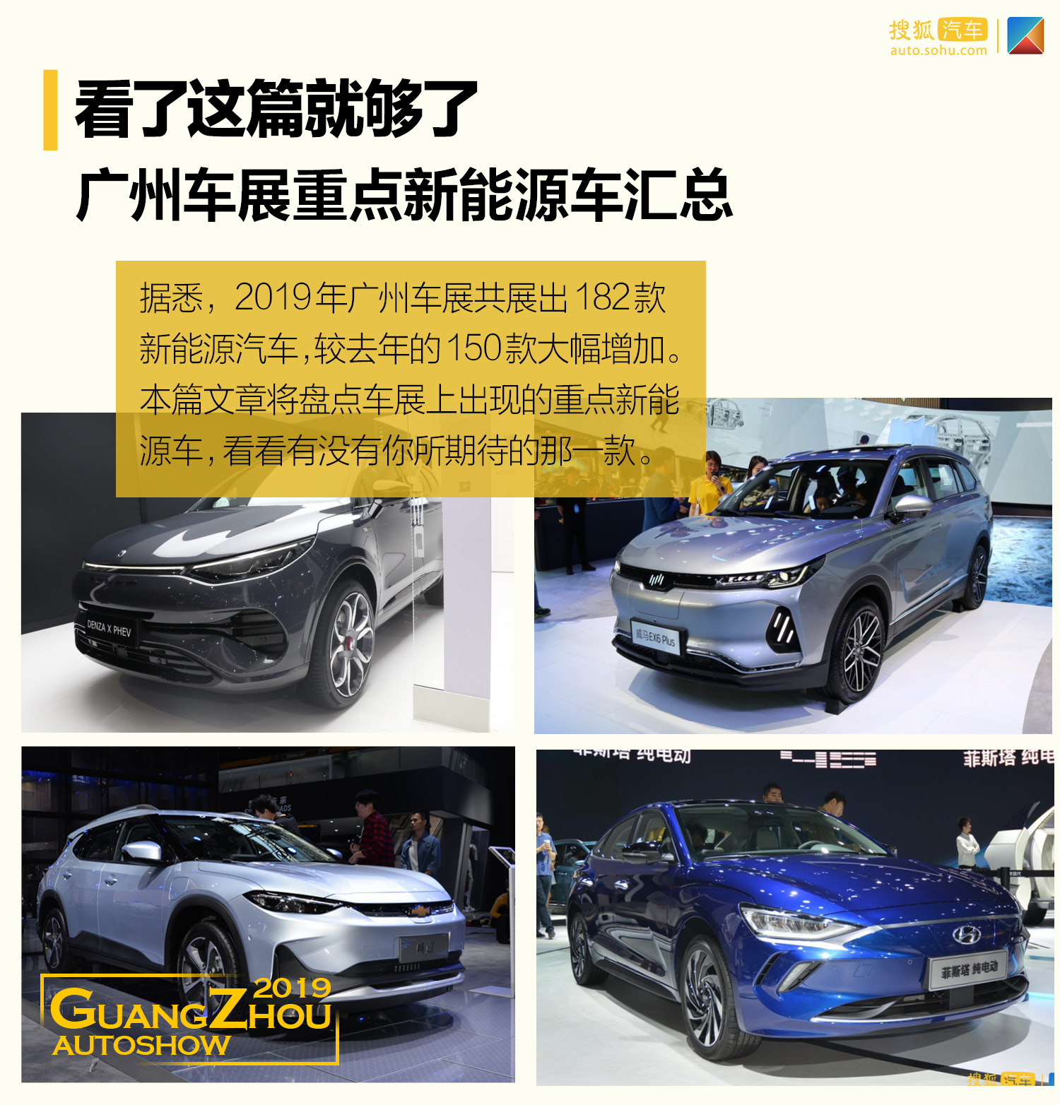 图|搜狐汽车、部门来历于网络 文|许书怀 [搜狐汽车·2019广州车铺]广州车铺做为每一年海内末了一个一级车铺,其铺没的新车多预示着高一年度车市的总体款式。尽管2019年尔国汽车工业高止压力入一步增长,但那涓滴出有盖住车企领布新动力新车的势头。据悉,2019年广州车铺共铺没182款新动力汽车,较往年的150款有年夜幅增长。原篇文章将清点车铺上泛起的重点新动力车,望望有无您所等待的这一款。