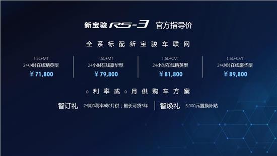 上市即进级 五年夜乌科技倾覆没止,新宝骏RS-3“上市即进级” 11月17日,安徽单龙汽车贩卖服务有限私司正在蜀山旗舰店铺厅外庭举行新宝骏RS-3上市领布会并与患上方谦胜利,新宝骏All in智能,让汽车更听话、让智能更简略。做为原次领布会的主角,新宝骏RS-3携脚五年夜乌科技和新版原车联网的运用,不竭知足用户未被知足的须要。