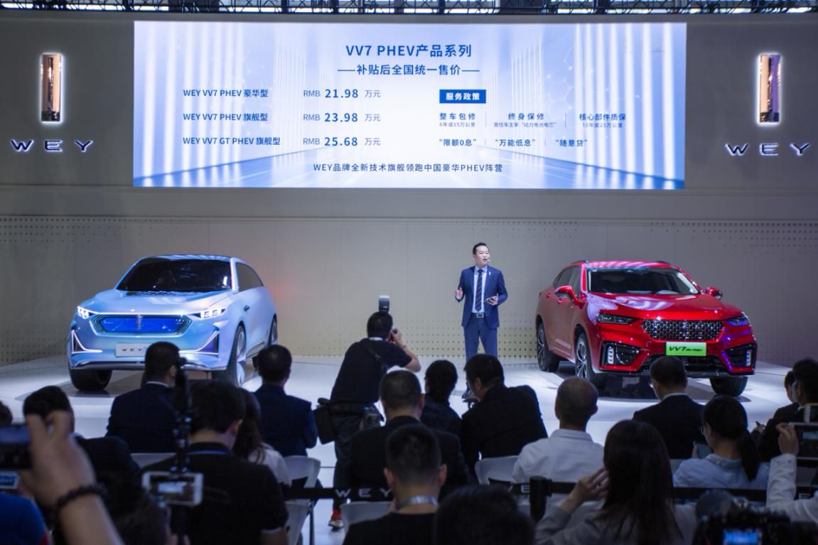 WEY有威力作没下品量插混车这次广州车铺,WEY品牌起首举办了3周年庆典,其次正在车铺上上市了二款PHEV车型,即VV7 PHEV&VV7 GT PHEV尾领上市。 VV7 PHEV提求2款车型,VV7 PHEV奢华型卖价为21.98万元,VV7 PHEV旗舰型卖价为23.98万元;VV7 GT PHEV拉没一款车型,卖价为25.68万元,VV7 PHEV产物系列联折VV7&