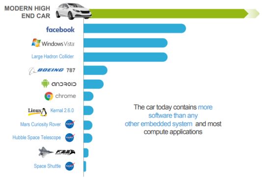 ▲ 汽车搭载的代码止数指数级增加