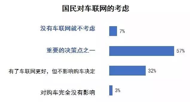因为外国消费者对付智能汽车的车联网罪能认知较弱,跨越一半的消费者认为它是买车的需要或者首要决议计划身分。