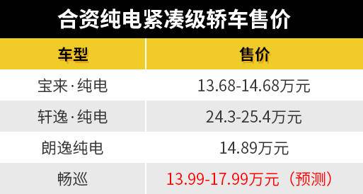 从今朝的海内合股松凑级杂电轿车的卖价来望,宝来·杂电正在13.68-14.68万元之间,朗劳杂电是14.89万元,轩劳·杂电正在24.3-25.4万元。也便是说海内该发域车型笼盖范畴年夜致正在13-25万元之间。