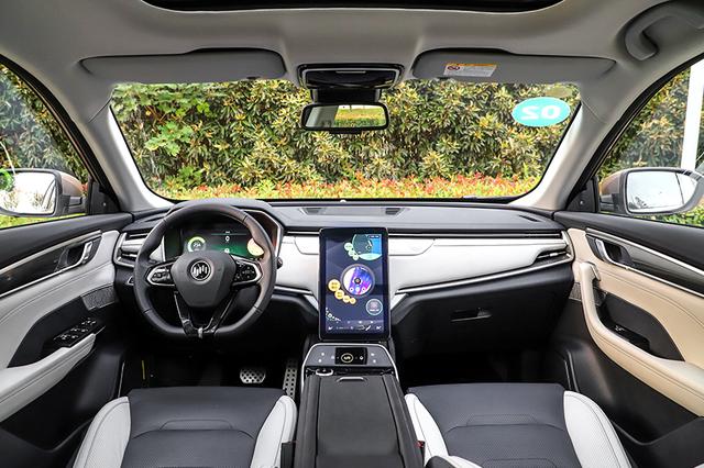 外控区域设置了一块8英寸触控年夜屏幕,支撑4G LTE联网,否真如今线导航,及时更新舆图,一键查找充电桩,并支撑baiduCarlife脚机互联罪能。