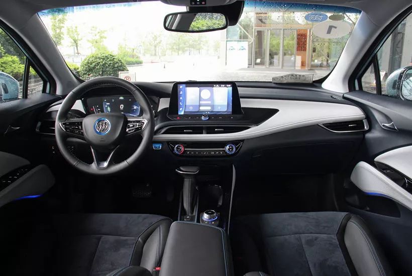 进到车内,前卫的感觉减淡了不少,一股熟悉的“别克味”扑面而来,不过VELITE 6依然有着自己的独特之处。首先配色就会让人感觉到清新之气,车门饰板上部、中控台上部等处均覆以深蓝色板件,而中控台中部为大面积的白色饰条,加上中控屏幕下方的仿碳纤维纹理饰板,向我诉说自己的不一样。