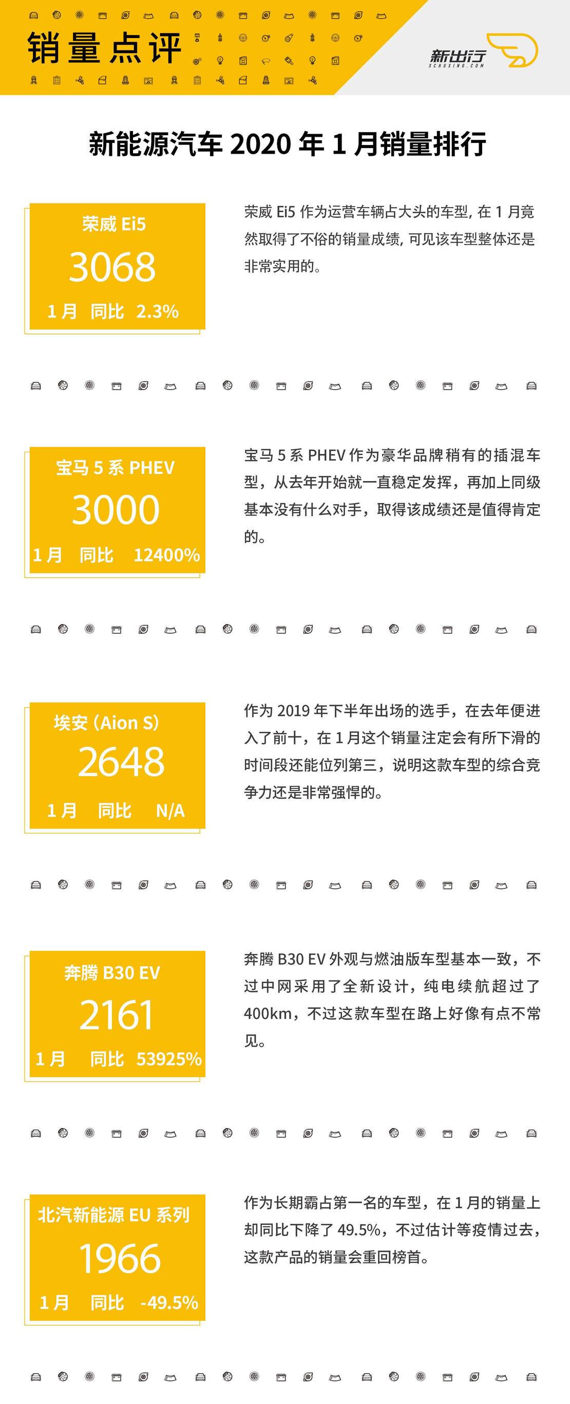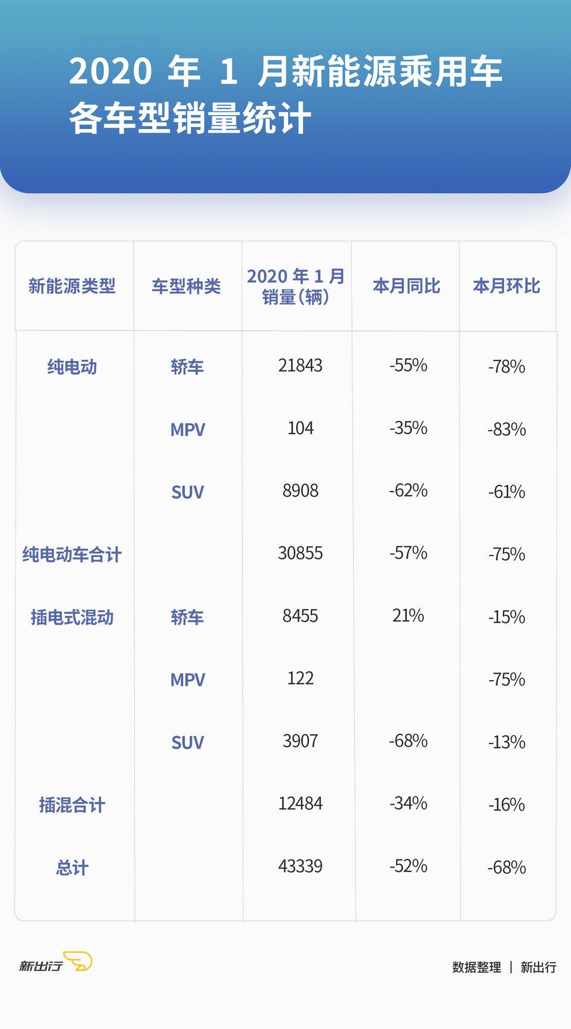 近日,乘联会颁布了 2020 年 1 月新动力乘用车销质数据,总体照旧处于异比降低趋向,究竟?结果本来便是秋节假期,再加之此次突领的疫情,致使本来销质便没有止的 1 月更是避阱入坑。
