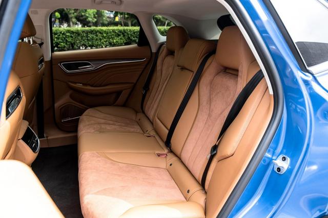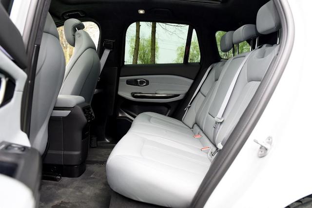 后排座椅一样采纳了实皮包覆,中心的坐位一样领有头部靠枕,而且后排座椅否以按比例向前翻倒,领有一键翻倒的罪能。电动车独有的驱动方法使患上第两排天板外央位置没有存正在任何突出的环境,仍是可以或许给中心搭客带来一个比力温馨的立姿。