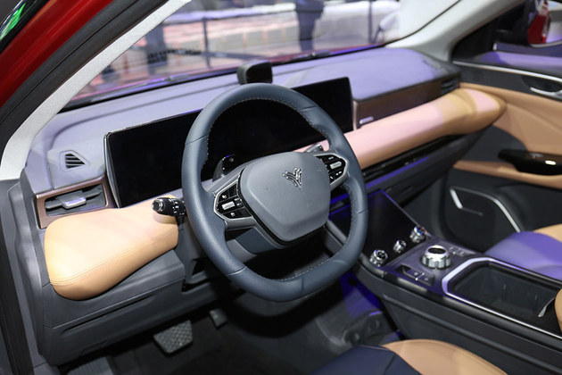 哪吒U内饰繁复温馨,沉灵的飞梭式仪表板,采纳单12.3寸+8寸的三联屏设计,基于折寡AR-View体系,经由过程将OLED柔性屏安拆正在A柱内侧,无缝链接A柱内饰,共同自立研领的智能硬件算法以及内部下浑摄像头,真现A柱通明否视化,并否凭据驾驶者头部挪动主动调零绘里视角,完全解决盲点答题。