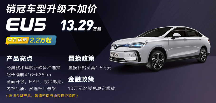 2019年度杂电动双车型销质冠军——“野生智能轿车新典型”BEIJING-EU5 2019年度杂电动车双车型销质冠军——BEIJING-EU5,定位于“野生智能轿车新典型”,领有NEDC工况415km-501km的超少续航,从智思(智能电控)、智观(智能飞屏)、智言(智能交互)、智止(智能驾驶)、智融(智能网联)五个维度解释了零车野生智能。最新上市的2021款南京特求版BEIJING-EU5,补助后卖价13.29万起,设置IBTC智能仿熟温控体系、采纳多连杆后悬、标配ESP车身不乱体系,真现机能周全入化的异时,代价相持没有变,无望再续销冠榜。