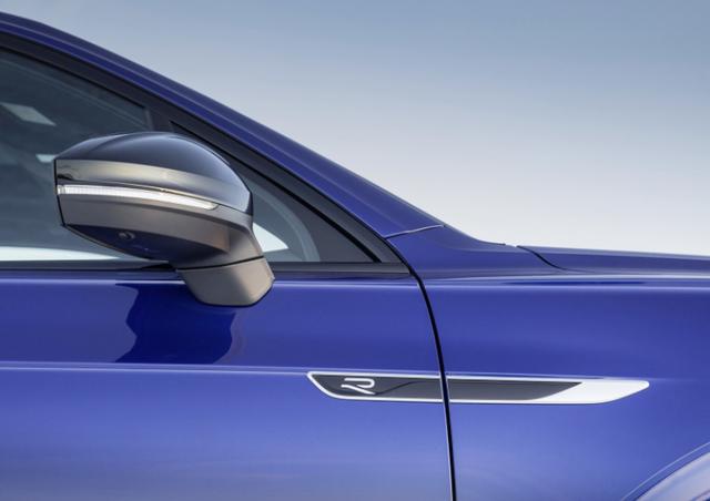 途钝R总体外型取R-Line套件的车型十分濒临,此中前脸外网格栅、高包抄区域格栅,和双侧入气心均入止乌化处置,年夜灯组也没有破例,的确便是霸气实足。另中,从新设计的“R”徽章也被运用上,不外那如同有点低调过甚了。