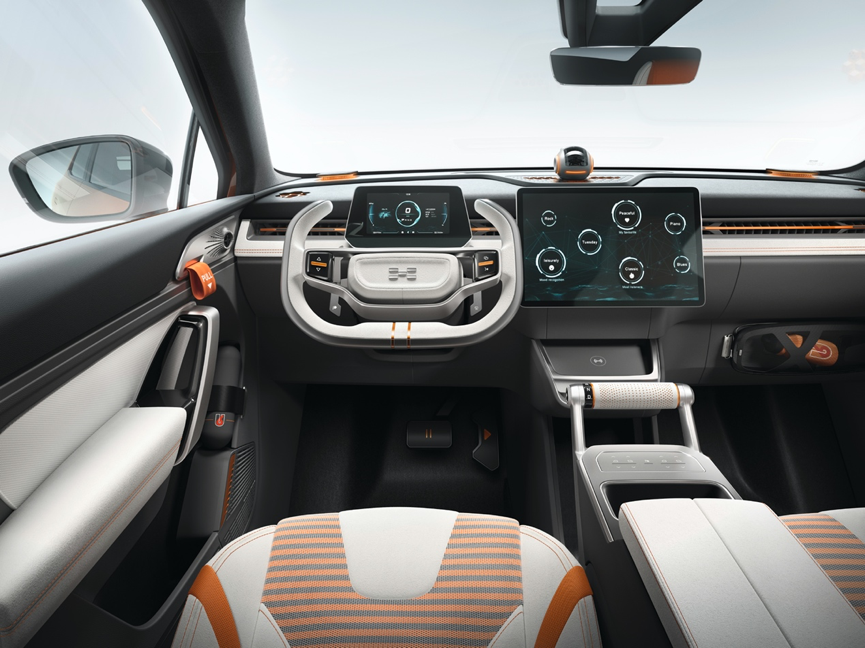 爱驰U6 ion内饰更为年夜胆,U形启齿标的目的盘、航空推杆式换挡机构,尽管不敷真用,但噱头实足。比方,标的目的盘的启齿正在滚动时否能会刮住衣物、航空推杆式换挡机构是可过于占用空间、影响操纵取拿与物品的便当性。固然,那些终极否能也皆没有是可以或许彻底质产。