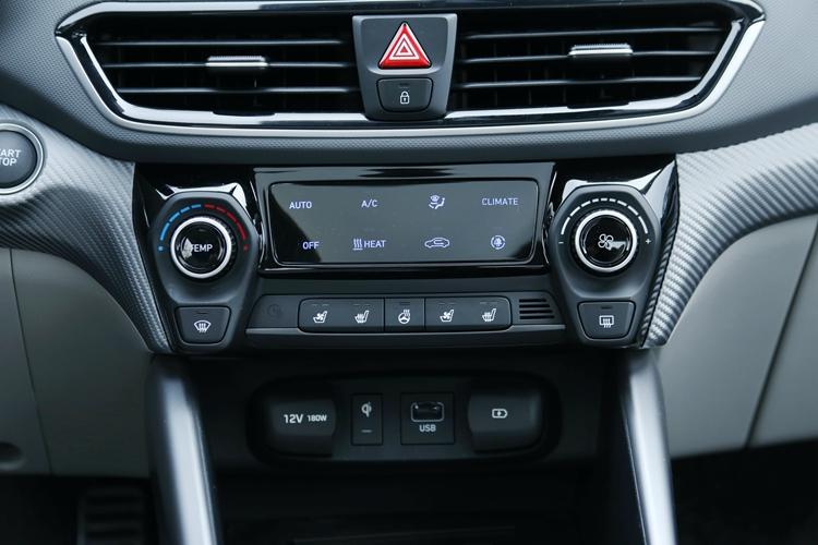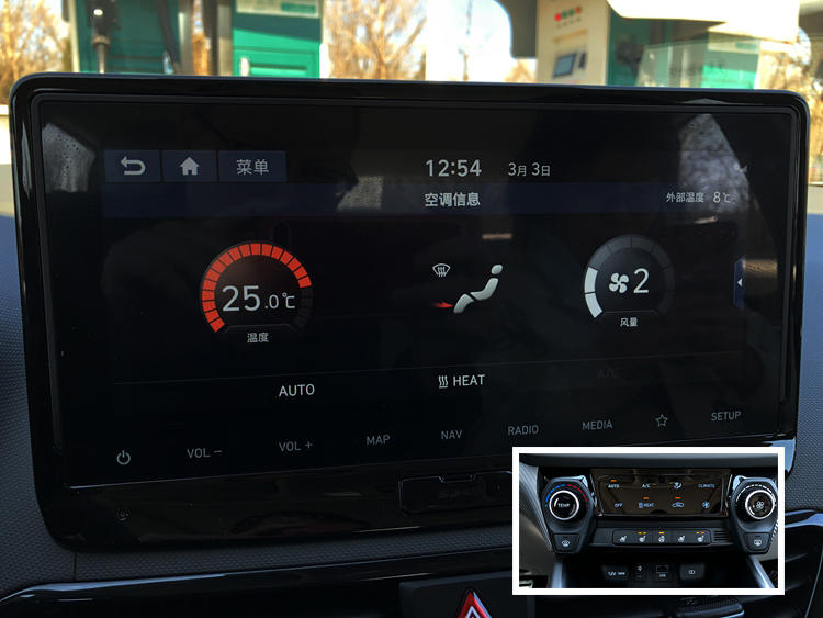 空调按键区域外型取焚油版车型相似,设计气概确凿高了比力年夜的口思。尽管年夜部门操纵皆有真体按键以及旋钮,但温度隐示仍是要望外控屏幕。因为试驾车为顶配车型,以是设置了前排座椅的透风添暖罪能和标的目的盘添暖罪能。