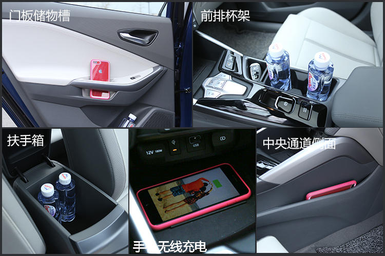 车辆设计有比力多的储物空间,但除了了无线充电区域的储物槽空间比力年夜以外,其他储物空间的尺寸其实不是很年夜。