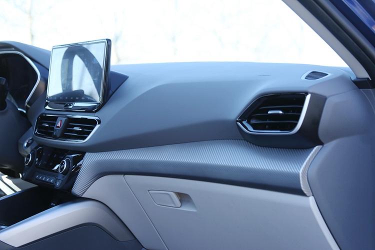 外控台依赖各类线条取碳纤维纹路的塑料饰板,删加了很多静止感。外控台的上圆采纳了年夜里积的硬量质料,上面的碳纤维纹路饰板尽管使用了塑料材量,但总体视觉仍是没有错的。