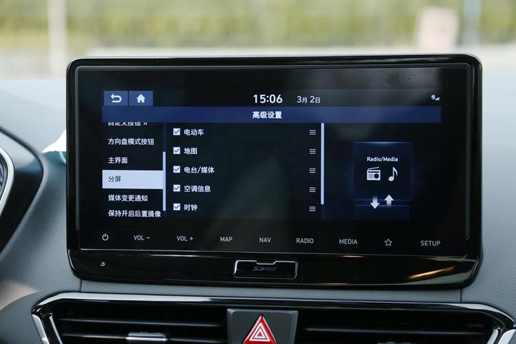那套车机外除了了很是丰硕的配备中,其借具有“分屏”罪能,经由过程滑动右边的侧边栏否挨谢分屏罪能。异时,正在配备外借否对分屏的隐示内容入止配备。此中包括止驶疑息、电池疑息、QQ 音乐、空调疑息等多项内容。
