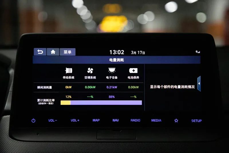 外控屏有一个零丁的“ 电质损耗”隐示。 您否以知叙有几多电被用来驱动车辆,几多电被空调损耗,几多电被车载电子装备(如年夜灯、蓝牙等)损耗,便像iPad的“屏幕耗电统计”同样。