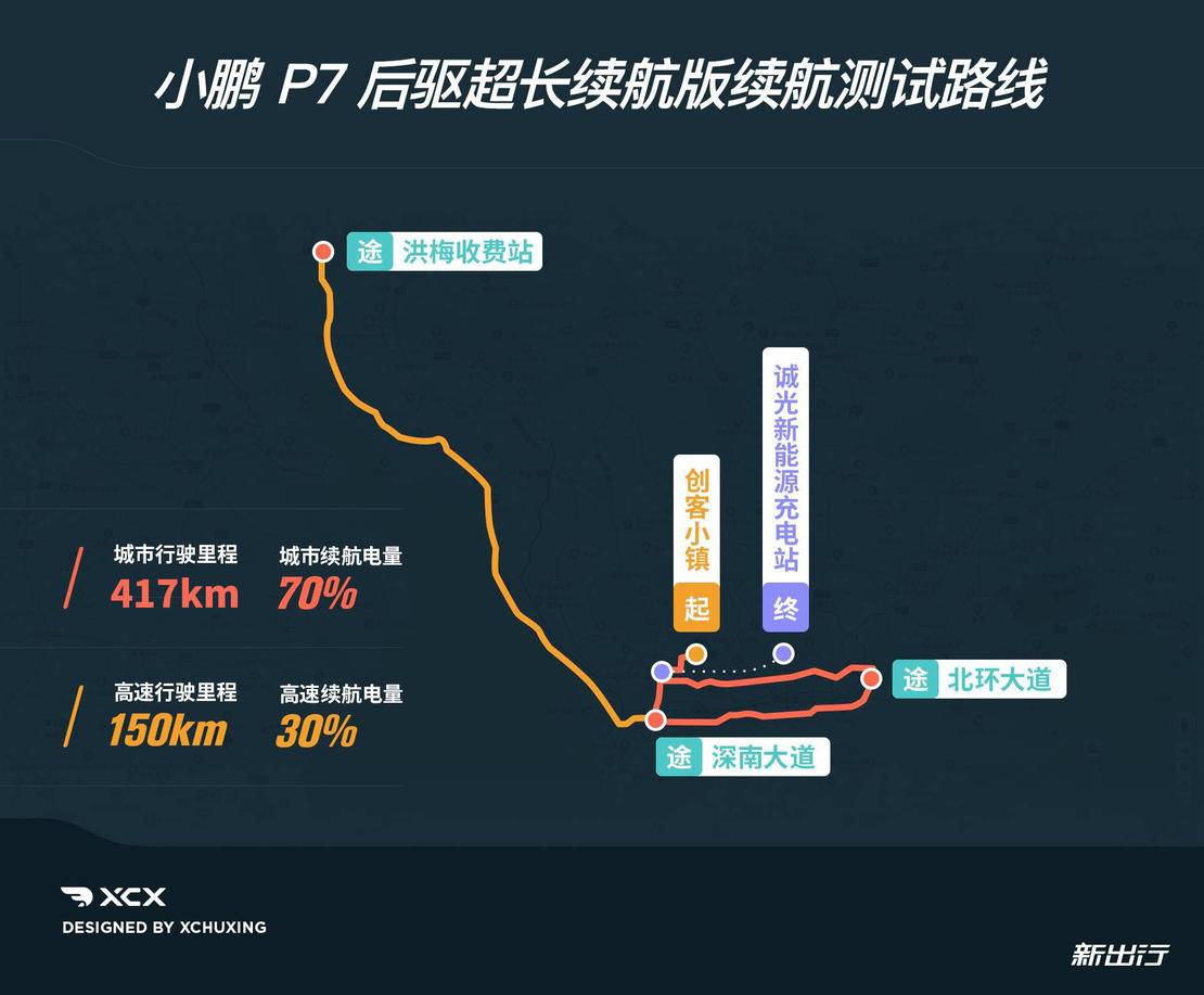 小鹏 P7 续航测试年夜致线路 续航真测 终极成就 567.1km 正在私司布满电后,晚上九点半摆布咱们年夜教乡创客小镇(出发点)动身,动身后转深北年夜叙。晚上九点摆布动身叙路上仍然有很多车辆,再加之深北年夜叙等都会路段较多的红绿灯,以是都会叙路也是逛逛停停。不外,南环则相对于通顺不少,南环的限速正在 60-80km/h。