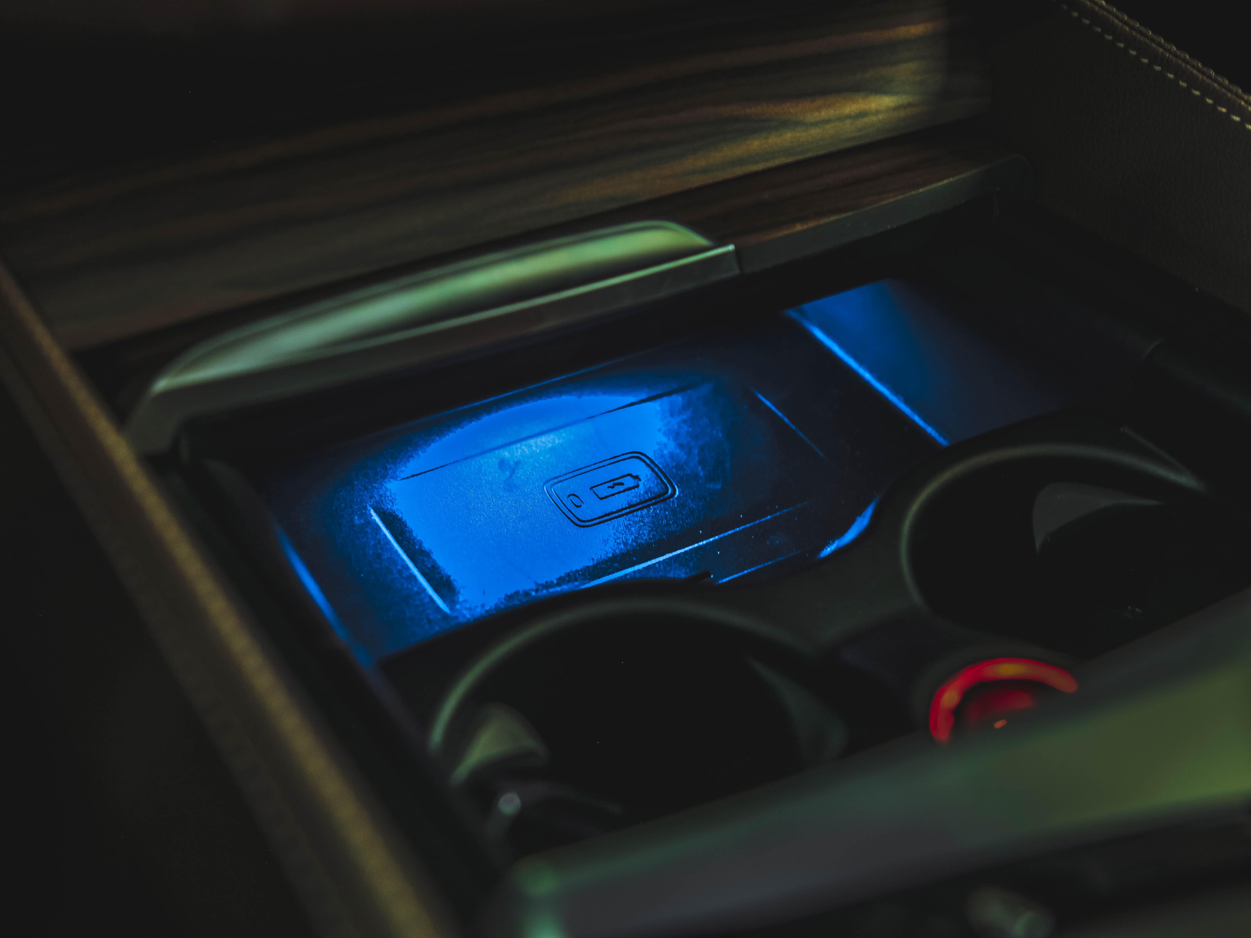齐系车型正在杯架火线设置了无线充电仄板,否敌手机以及钥匙入止充电。