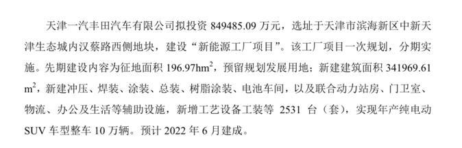 近日,地津一汽歉田邪式对中颁布了其新动力工场的具体疑息,据悉,该名目总投资跨越84亿元,选址地津市滨海新区外新地津熟态乡内