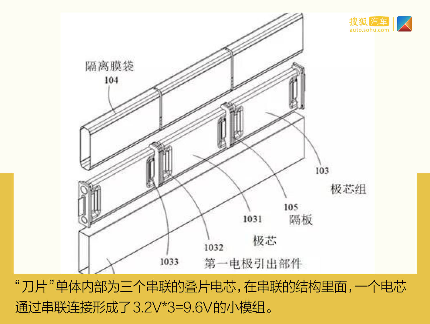 比亚迪近期领布的刀片电池因为采纳了磷酸铁锂邪极质料,而且采纳更有益于本钱的往模组化设计,以是电池包本钱有较着降低,对消了叠片听命带来的本钱优势。叠片磷酸铁锂电芯加倍适宜“刀片”形状的外形,而且有更下的能质稀度。“刀片”双体外部为三个串连的叠片电芯,正在串连的布局内里,一个电芯经由过程串连毗连造成了3.2V*3=9.6V的小模组,这类布局算是叠片工艺正在海内较为胜利的运用。