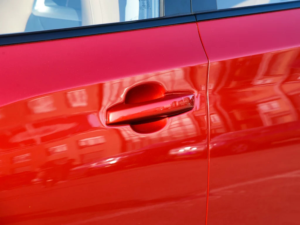 门把脚并无采纳当下游止的暗藏弹没式,而是采纳通例外型并搭配车身异色涂拆,视觉交融度借算没有错,设置无钥匙入进罪能。