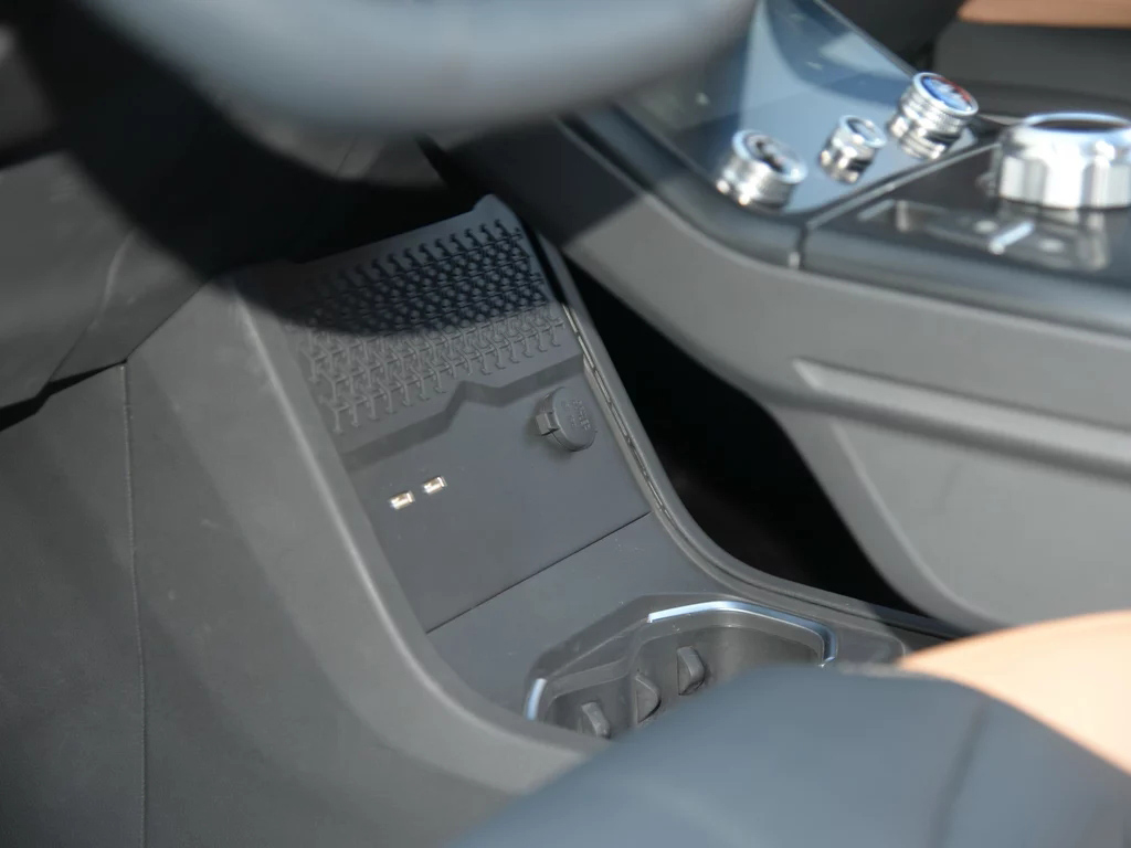 歪斜安插的空调节制屏幕后圆腾没储物空间,设有二个火杯架、二个USB接心以及12V电源。只不外如许安插的火杯架正在与搁饮料时否能会有些不敷利便。