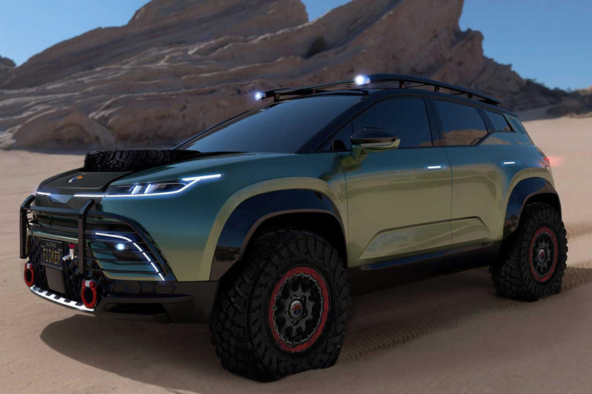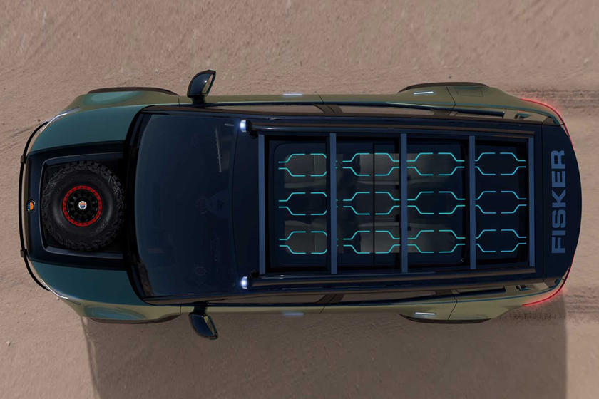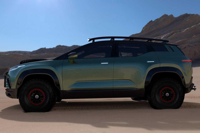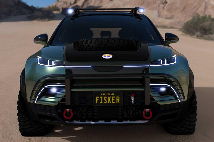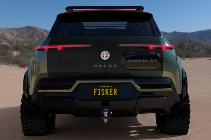 Fisker Ocean Force-E中旁观起来十分软派,很易念象那是一款杂电动越家车,添拆的越家套件包含悬架进级,越家车轮以及轮胎,高保险杠上附添的前灯,前灯庇护杆,前拖钩,散成照亮灯的车顶止李架,齐尺寸备用轮胎,较低的前部防护踩板以及更坚忍耐用的内饰。乃至另有一个年夜的饮用火箱,内里有一个火龙头。Fisker出有泄漏内饰的细节。
