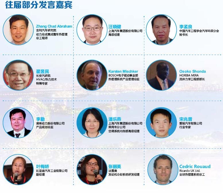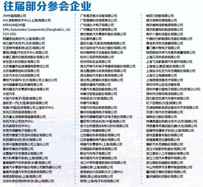 活动内容收起 ![]() ![]() ![]() ![]() ![]() 大会议程 分论坛一:传统&混动系统 特邀嘉宾主持:浙江吉利汽车研究院有限公司,热管理开发部总工程师 传统动力系统热管理 发动机热管理/系统集成和混动热管理 ——Ricardo里卡多科技咨询(上海)有限公司, 资深热管理工程师 传统动力系统热管理集成设计和有效管理 ——奇瑞汽车工程研究院,热管理总工 内燃机汽车发动机加热技术 ——BMW(确认中) PHEV/HEV的混动热管理策略 ——泛亚汽车技术中心有限公司(确认中) 混动汽车热管理控制策略设计 ——广汽集团汽车工程研究院 系统热管理专家 商用车热管理系统 商用车整车热管理技术开发 ——东风柳州汽车有限公司商用车技术中心,热管理工程师 商用车发动机散热冷却模块的匹配 ——郑州宇通客车股份有限公司(确认中) 冷却系统模块设计与优化 防冻液在发动机冷却系统中的应用 ——发言机会开放中 整车零部件热管理优化设计(散热器、水泵等) ——发言机会开放中 废热回收&节能减排 尾气处理系统(EGR)优化效率及经济性分析 ——博格华纳(中国)投资有限公司 (确认中) 整车多级热源热管理系统设计及能耗最优控制技术 ——重庆长安新能源汽车科技有限公司(确认中) 国家排放法规标准及节能减排 ——天津国家检测中心(确认中) 分论坛二:新能源三电系统 三电系统热管理开发与设计 三电热管理的集成化、系统化设计与开发 ——爱驰汽车,热管理经理 不同环节与工况下,三电热管理系统的应对策略分析 ——比亚迪汽车有限公司(确认中) 电机和电池热管理的解决方案 ——AVL Expert 纯电动热管理开发的案例分析 ——长城汽车股份有限公司 (确认中) 仿真:实验模拟三电热管理问题并通过相关数据解决问题 ——绿驰汽车科技(上海)有限公司(确认中) 电池热管理控制策略 热管理质量控制:热失控及热扩散标准制定进展及分析 ——中国汽车技术研究中心有限公司,高级工程师 电池热管理温度一致性解决方案 ——广汽新能源汽车有限公司(确认中) 电机电控热管理控制策略 基于整车角度的驱动电机热管理设计 ——博泽汽车部件有限公司(确认中) 电机永磁材料的选择对电机热管理的影响 ——同济大学(确认中) IGBT内部散热设计 ——发言机会开放中 零部件&材料 多传感器多角度联合检测预警温度及有害气体方案策略 ——博世汽车部件(苏州)有限公司(确认中) 三电热管理相应零部件及材料开发前瞻 ——汉拿伟世通(确认中) 导热材料、热交换器材料发展的应用现状及发展趋势 ——发言机会开放中 分论坛三:空调系统 新能源乘用车空调热管理系统 新能源汽车电池外部环境热管理控制设计 ——比亚迪汽车有限公司(确认中) 新能源乘用车空调热管理系统开发 ——上海蔚来汽车有限公司(确认中) 发言主题确认中 ——上海交通大学机电设计与知识工程研究所,助理研究员 新能源乘用车热管理系统架构优化 ——上海汽车集团股份有限公司乘用车分公司(确认中) 新能源商用车空调热管理系统 超低温热泵3.0及其热管理系统 ——上海加冷松芝汽车空调股份有限公司,技术部总监 新能源客车热管理系统集成 ——厦门金龙汽车空调有限公司(确认中) 新型环保冷媒工质的研发与应用 新能源汽车热泵研发进展——新一代冷媒CO2热泵系统的研究情况 ——杭州三花研究院,研发总监 R1234yf新冷媒应用的现状与趋势 ——霍尼韦尔(中国)有限公司,技术主管(确认中) HVAC通暖系统 空调壳体过热保护的控制策略选择和应对方案 ——发言机会开放中 PTC加热的能效管理与新技术 ——发言机会开放中 HVH加热技术最新设计 ——伟博思通加热制冷技术(北京)有限公司(确认中) 材料及工艺(发言机会开放中) 新能源新冷媒适配的管路材料匹配与设计 新能源汽车制冷模式创新带来的材料选择新趋势 氦气检漏技术在新能源热管理结构下的应用 更多议题征集中,期待您的宝贵建议! 往届部分参会企业 整车厂 安徽江淮、北京汽车、北汽福田、北汽、比亚迪、东风柳州汽车、东风、东风商用车、东南汽车、广汽吉奥、广汽工程研究院、小鹏汽车、海马、华晨、华泰、吉利、吉利新能源商用车、敏安电动汽车、昌河汽车、知豆、奇瑞、厦门金龙、上海海马、上汽集团、蔚来、蓥石、上汽大众、上汽技术中心、上汽商用车、上汽通用五菱、天津一汽夏利、通用汽车、沃尔沃、扬州亚星客车、一汽轿车、一汽解放、云度新能源、马自达、长安、长城、吉利研究院、郑州宇通客车、众泰、重庆长安 零部件与其他相关企业 3M、MIRA、SPAL、浙江盾安、博世、东丽塑料、格朗吉斯铝业、杭州高特、华峰日轻、华阳通用电子、柯美、明导、纳百川、南京胜捷、帕克热敏陶瓷、琴信科技、天津格特斯、伟博思通、英福康、重庆欧尼斯特、AVL李斯特、TüV SüD、阿黛凯、埃贝赫、艾圣特传感系统、爱发科东方、爱信(南通)、安徽汇展热交换系统、安徽苏立电热、安世亚太、奥特佳、北京高鑫伟业、北京海博思创、北京美联桥、北京伊萨、北汽银翔、博格华纳、博世力士乐、沧州瑞富泰克、常州腾龙、成都拓利、大创汽车、大陆汽车电子、道依茨一汽、德纳、迪比卡电热设备、电装、东风美瑞特、东风贝洱、东风富士汤姆森、东风汽车泵业、东莞市深鹏电子、意普万尼龙科技、杜邦中国、法