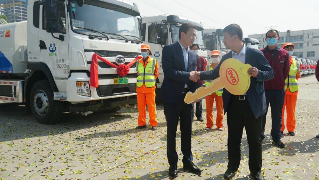 比亚迪 上午10点,86台极新的杂电动环卫车正在西安比亚迪下新厂区表态,车型笼盖了叙路浑扫、渣滓支运、渣滓压缩、餐厨渣滓运输等环卫功课枢纽,从4月29日起投进环卫一线。