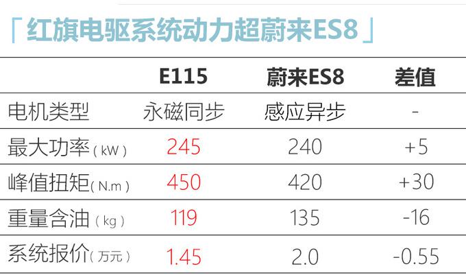 4.2s的加快成就要劣于将来ES8最快4.4s,另中另有一点若是但凭一个如许的机电是有余以让如许一款年夜SUV正在4s内实现0-100km/h的加快,红旗 E115(参数|图片)或者将先后皆采纳FME 245kW电驱体系。另中最始的红旗E115环评私示也证明了E115将使用先后单机电结构,现在新电驱体系已经经投产以是此前环评外的机电数据也便没有具有参考性。搭载单机电的红旗E115的综折罪率将到达490kW,峰值扭矩900N.m,其扭矩已经经跨越了保时捷 Taycan(参数|图片) Tubro的850N.m。