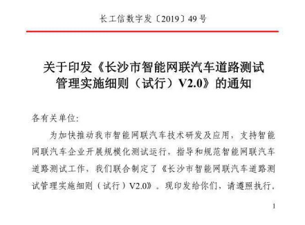 6月21日,长沙市发布《长沙市关于进一步促进人工智能产业发展的若干意见》和以《长沙市智能网联汽车道路测试管理实施细则(试行)V2.0》为核心的6项涉及智能网联汽车公共道路测试的管理规程,并一次性为5家企业发放49张测试牌照,建设36条道路56个路段共计135公里城市开放测试道路,规划 100公里高速公路测试示范道路,标志着支撑长沙智能网联汽车、人工智能等产业发展的生态体系正加速形成。 《长沙市智能网联汽车道路测试管理实施细则(试行)V2.0》 发布会上,来自中车时代的1台自动驾驶公交车、长沙智能驾驶研究院1台自动驾驶公交车、北京福田戴姆勒和嬴彻科技的2台自动驾驶物流重卡以及百度45台自动驾驶乘用车获得公安交警部门发放的测试牌照