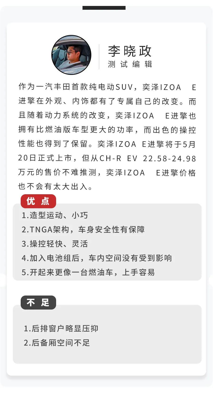 正在此以前试驾过2.0L焚油版的奕泽IZOA,机动的转向和TNGA颇具静止特征底盘调校,让尔对那台小型SUV的印象很是深入。