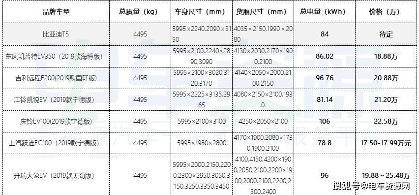 T5对标春风凯普特EV350 做为最经典的4米2货车,原次比亚迪拉没的T5少严下尺寸为5995×2240,2090×3150妹妹,货厢空间为16.7-18m?,总储电质为84kWh。 从续航威力来望,比亚迪T5的电质其实不算下。今朝,4米2沉卡电质次要散外正在3个区间,80多度电,90多度电以及100多度电,此中至关一部门是正在90度电摆布。