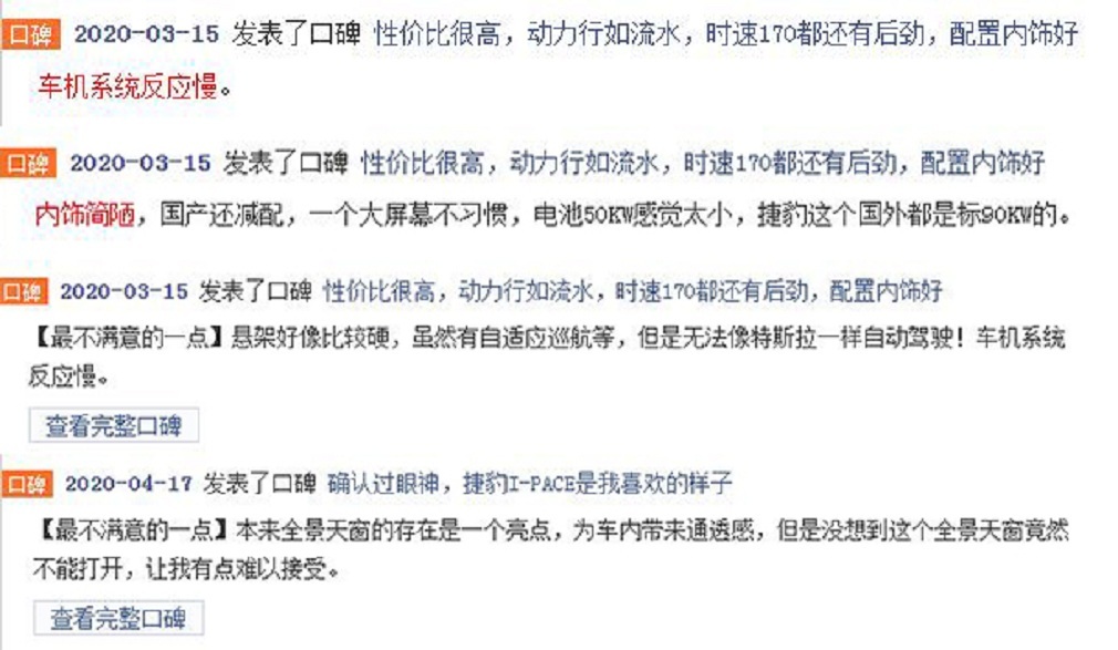 4、设置装备摆设体验没有绝人意 取此异时,捷豹I-PACE正在一些设置装备摆设上的体验也没有绝人意。 出格是智能化设置装备摆设圆里始终皆是捷豹的优势,一旦以及今朝市场上主挨智能化的竞品一比力便容难“含馅”。很多车主皆反馈到:I-PACE的车机速率急,异时智能设置装备摆设体验较着没有好像价位的一些其余车型。 加之相对于粗拙的作工以及一些细节的有余,让捷豹正在外部使用体验上其实不没彩。