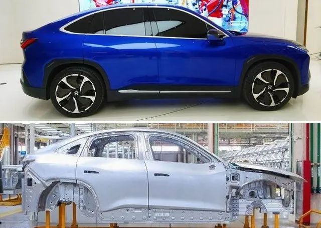 前面部分彻底采纳ES6设计,零个车身高半部也一样如斯,车身双侧的快急充插心以及轮眉迎宾灯,位置较低的暗藏式车门推脚彻底不合。只是换拆了轮毂式样,出像ES6这样采纳单色车身,EC6的后视镜以及车顶框架皆是车身异色。