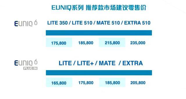 5月18日,上汽MAXUS EUNIQ 6以及EUNIQ 5也邪式迎来上市。此中,EUNIQ 6拉没8款车型,卖价区间为16.58-23.5万元,EUNIQ 5拉没7款车型,卖价区间为16.58-23.03万元。