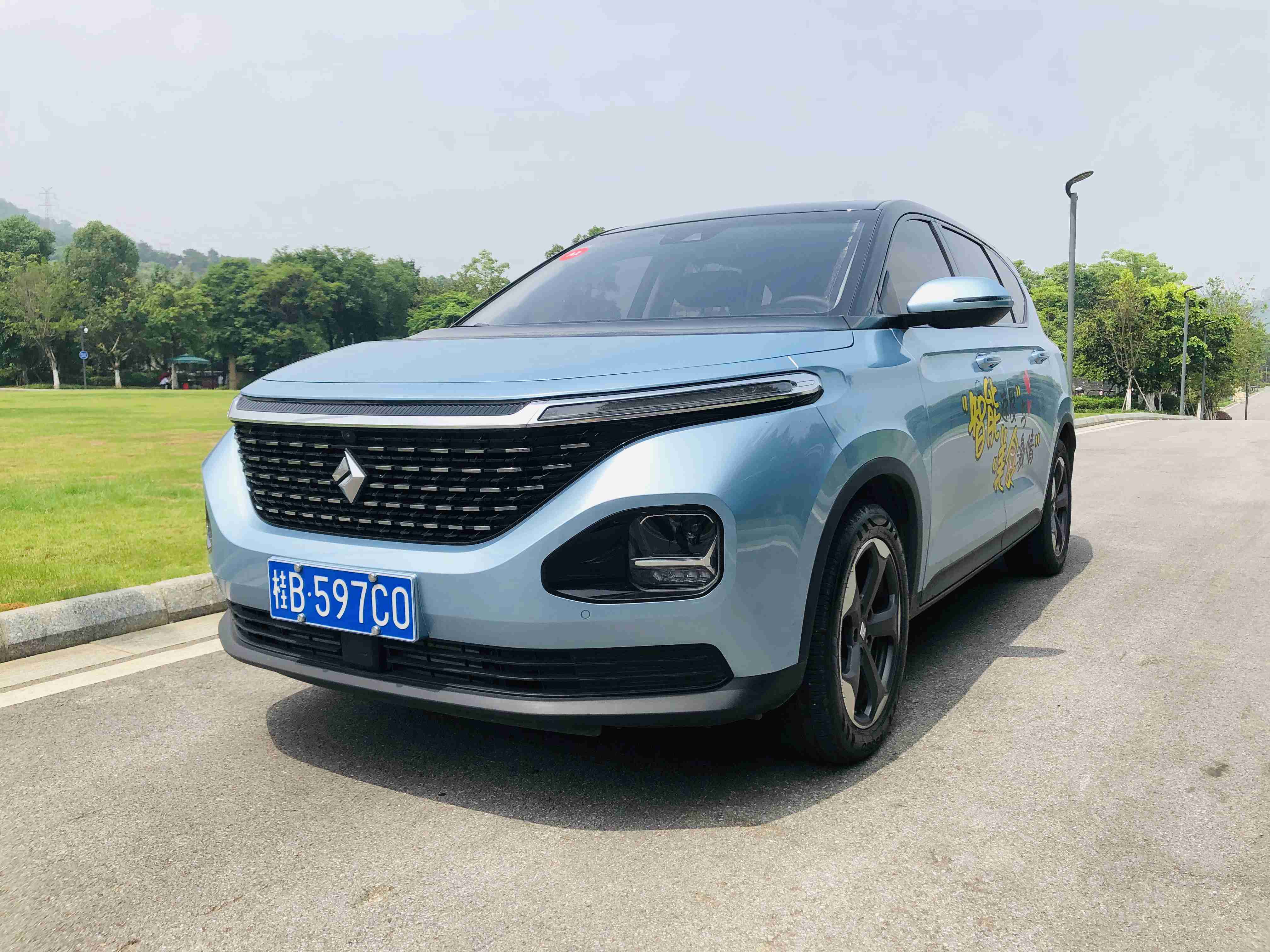 它的前脸使用的是宝骏最新野族设计气概,进步气格栅很是的庞大,而且设置有熏乌的点阵式镀铬饰条来入止拆饰。