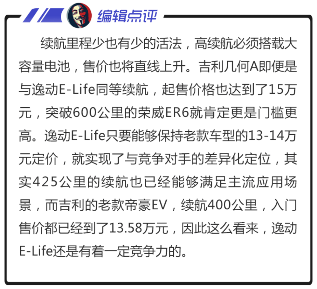 正在 但E-Life的机能进级其实不较着,机电设置装备摆设连结没有变,电池组容质52.7kWh,望下去取嫩款劳动EV460的52.56kWh也出甚么差异。续航威力从405km小幅晋升到425km,那正在2019年及以前,仍是支流,乃至当先程度,但现在年夜野争相晋升续航的武备竞赛高,那只能位列是均匀程度之高。