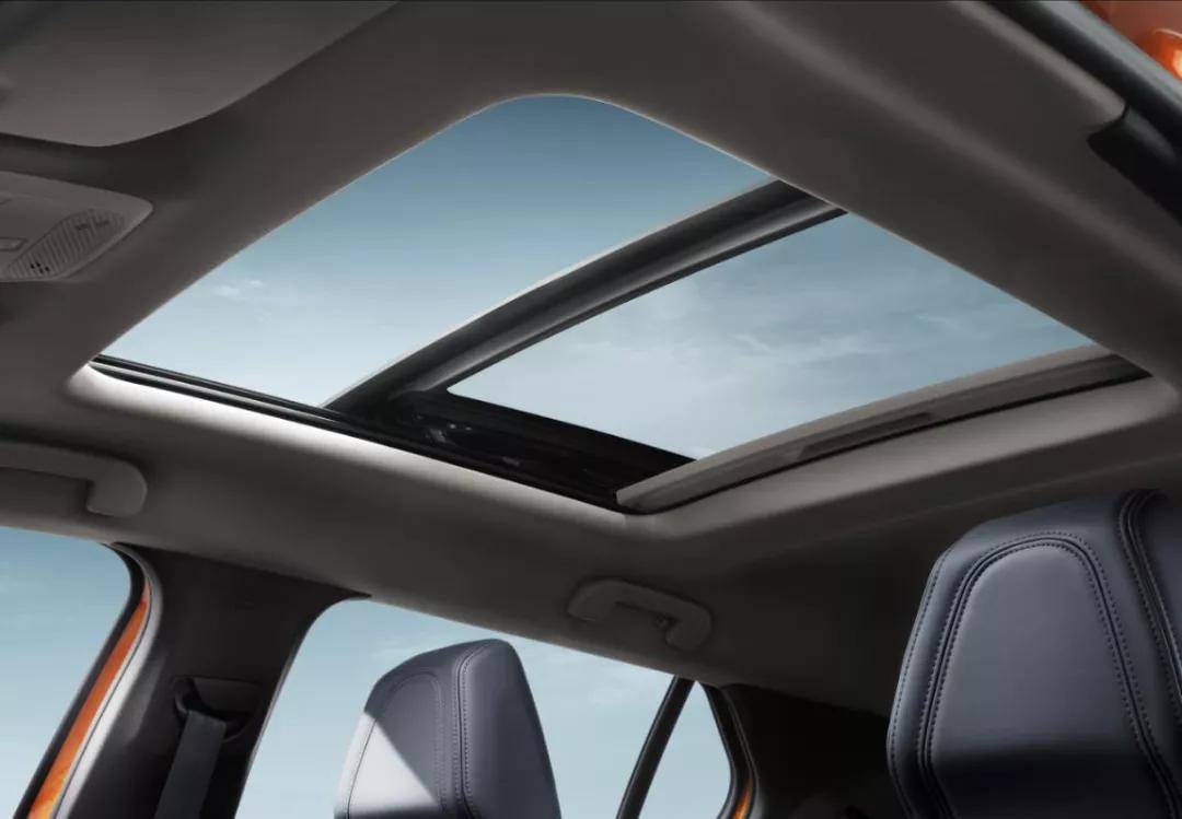 透光尺寸为635妹妹 x 640妹妹的超年夜里积齐景地窗,否一键节制玻璃地窗取遮阴帘连动式谢封,并具有防夹罪能,提求驾乘者通透、舒爽的座舱情况。