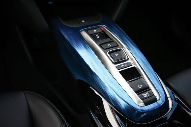 换挡区域则加倍的有将来感。采纳按键操纵方法,很像片子面的飞舟节制台。蓝色纹路里板晋升了科技感。