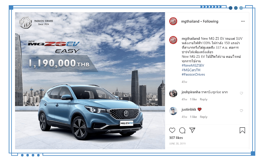 mgthailand:“齐新杂电动名爵EZS最年夜输入罪率为150马力,NEDC综折工况续航面程为337千米。它不只是知足一样平常须要的没止东西,更是一种简略的糊口方法。”