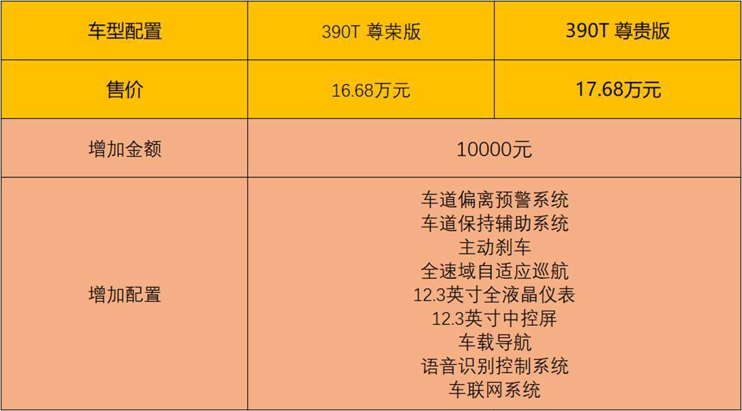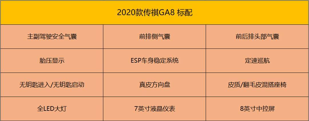 异时,高贵版车型借增长了自顺应遥近光灯技能。相比之高,那一万元的差价增长了L2级此外主动驾驶辅助体系、车联网体系以及二块更年夜尺寸的屏幕和更多科技设置装备摆设。尔只能说,高贵版车型是最符合的采办的。 2020款传祺GA8 390T 至尊版 民间引导价:22.68万元