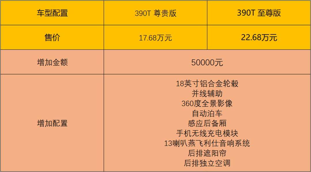 顶配车型至尊版以及高贵版车型的差价一会儿来到了5万元,但其增长的更多的是下科技设置装备摆设。相比之高,其增长了18英寸铝折金轮毂、并线辅助、360度齐景影像、主动停车、感想后备厢、脚机无线充电模块、和13喇叭燕飞利仕声响体系和后排遮阴帘、后排自力空调。