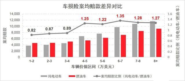 经由过程对美国的车险数据阐发,肯定杂电动车间的车益脱险率也存正在较年夜差别。 第三,下价位(均价6万美圆及以上)的杂电动车的车益险脱险率超过跨过外高价位车约48%;