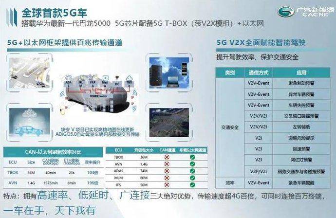 三.行业新动态--5G网联汽车 6月16日广汽新能源埃安V上市,自称“全球首款5G车”(如下图);正在预售的北汽ARCFOX α-T自称全球首个