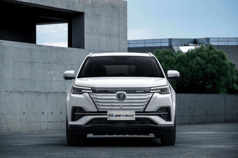 在外观方面,长安CS55纯电版基于燃油版的CS55 PLUS打造,在细节处融入了大量的科技元素。新车的前脸采用了倒梯形的封闭式前格栅,主体采用了与车身一致的白色,表面的凸起配备了银色金属装饰条,中央的LOGO用标志着电驱动的蓝色来装饰。 一条熏黑装饰带将大灯连为一体,左侧还有“
